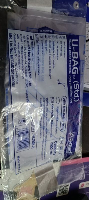 Packaging Details : Diagnostic Testing: Urine collection bags are used to collect urine samples for diagnostic purposes, such as urinalysis, culture, and sensitivity testing. Pediatric Care: Smaller, pediatric-sized urine collection bags are designed for use with infants and children who require urine collection for medical monitoring.