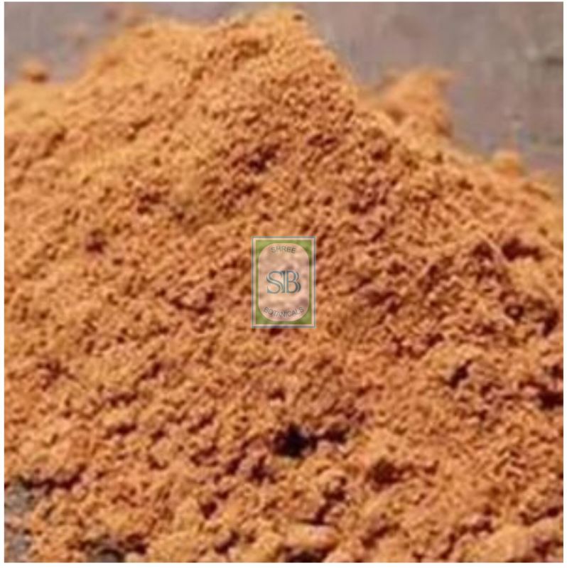Cutch Powder appears as a fine, reddish to dark brown powder with a typical mesh size of 80 to 100. It contains approximately 55–65% tannins and 5–10% catechin. The powder has a slightly bitter, astringent taste and is soluble in hot water. It has a moisture content below 10% and is free from added preservatives or chemicals. The pH of a 1% aqueous solution ranges between 4.0 and 5.5. The product is 100% plant-based, non-toxic, and has a shelf life of up to 2 years when stored in a cool, dry place in sealed packaging. It is available in bulk or retail packs, typically ranging from 100g to 25kg.