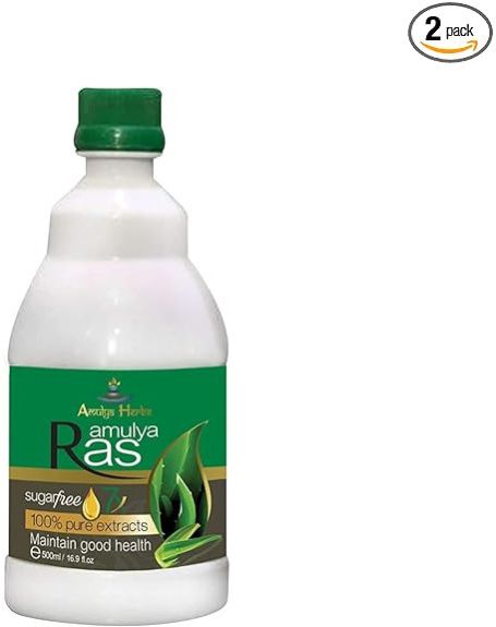 ABOUT THIS ITEM:Amulya Ras is a unique blend of herbs i.e. Aloe Vera with fibers, Amla, Tulsi, Geloye, Wheatgrass and Durva. It helps to maintain good health and energise the entire body system. Its antioxidant properties remove the toxins form the body. It promotes digestion, purifies the abdominal passage, increases RBCs and improves immunity.