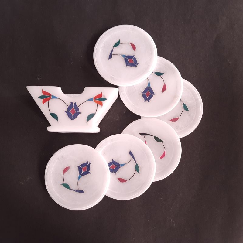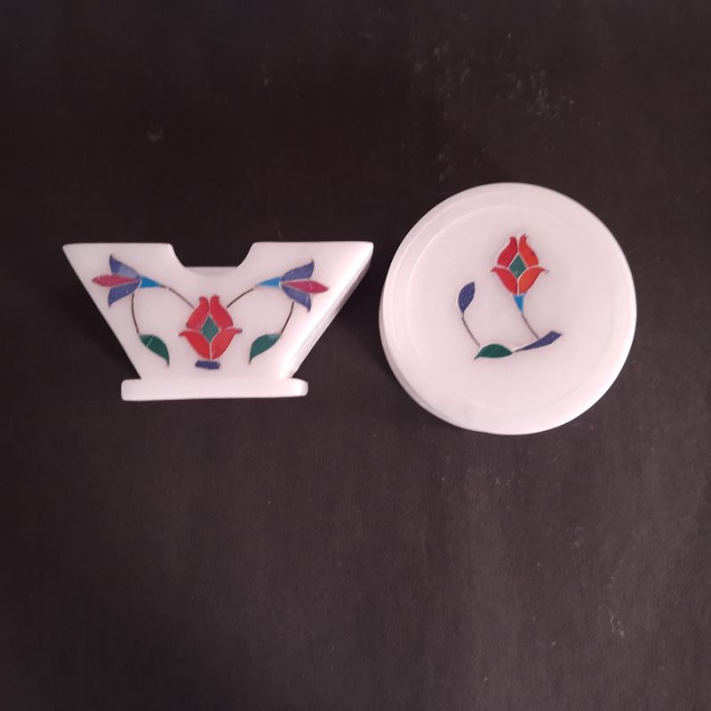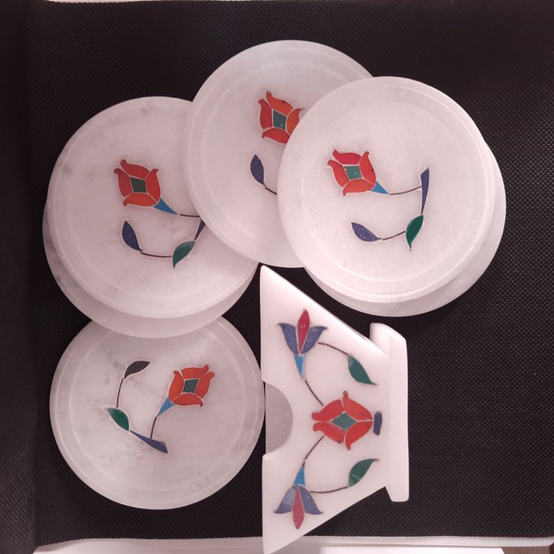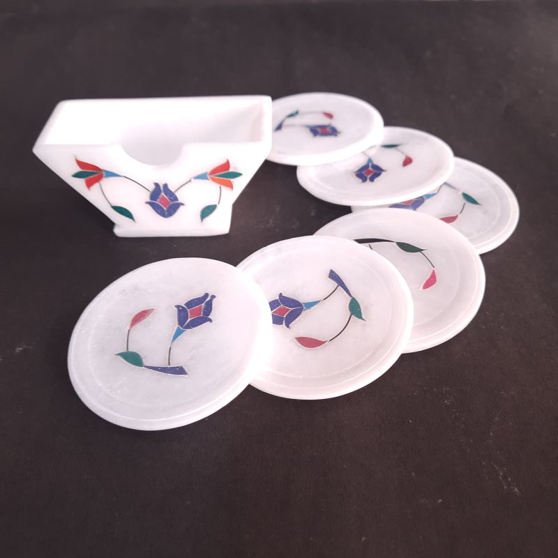 - **Characteristics**: These coasters often combine different marble pieces to create patterns, adding a decorative element to functionality. They are typically finished with a smooth surface and non-slip backing.