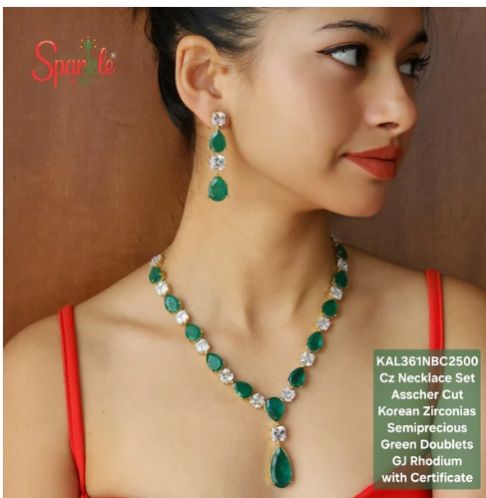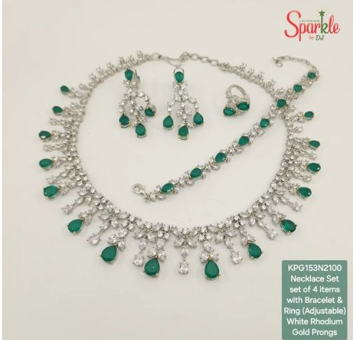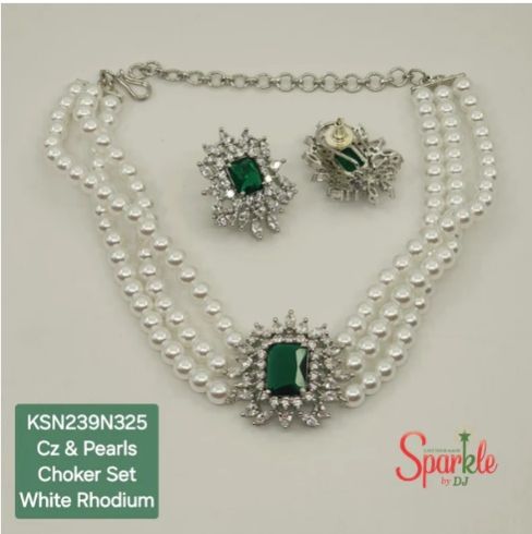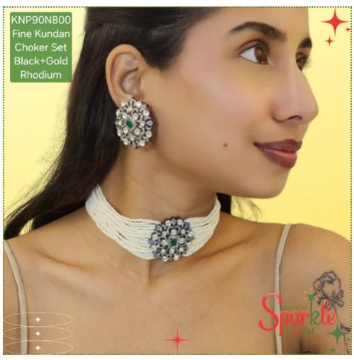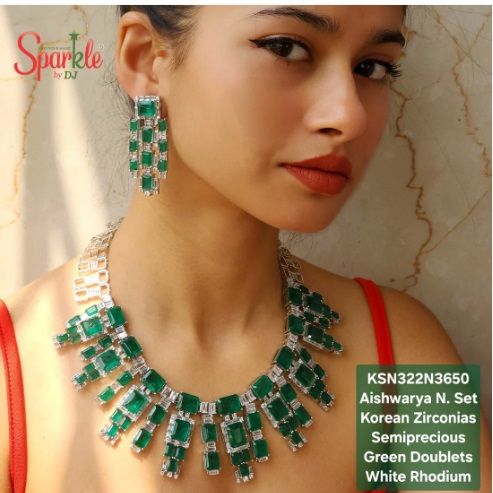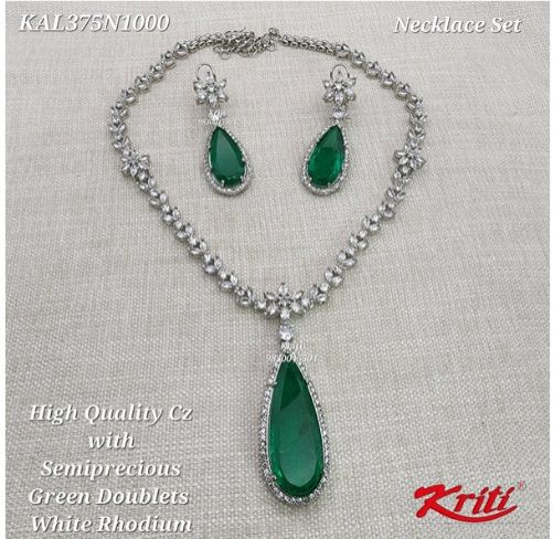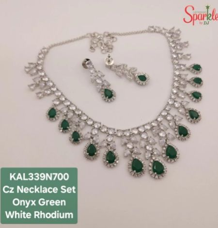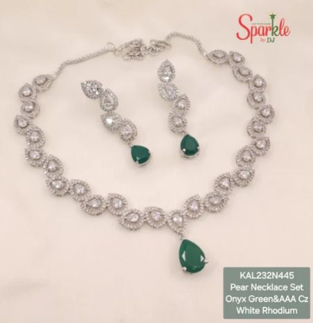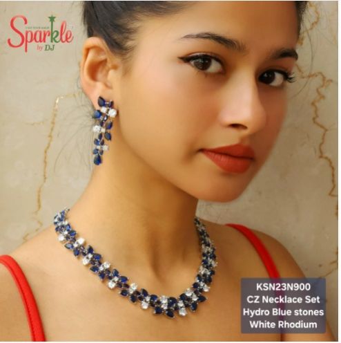 Embrace the captivating allure of imitation jewellery with our stunning collection of necklace sets, meticulously crafted with high-quality cubic zirconia and a medley of vibrant semi-precious stones. Each set is designed to add a touch of sparkle and elegance to your everyday attire or elevate your special occasions with a touch of royalty. Our imitation necklace sets feature glistening cubic zirconia stones, often referred to as simulated diamonds, that exude an unparalleled level of brilliance and radiance. These flawless gemstones seamlessly capture and reflect light, creating a mesmerizing display that rivals the sparkle of natural diamonds. A Symphony of Semi-Precious Stones Adding a touch of vibrant color and captivating beauty, our necklace sets incorporate a selection of semi-precious stones, each carefully chosen for its unique characteristics and mesmerizing hues. From the deep red allure of rubies to the soothing blue of sapphires and the enigmatic charm of amethysts, these stones add a touch of personality and elegance to every design. Affordable Luxury: Indulge in Sparkle Without Breaking the Bank At the heart of our philosophy lies the belief that exquisite jewellery should be accessible to all. Our imitation necklace sets offer an unparalleled level of quality and craftsmanship without the hefty price tag associated with traditional fine jewellery. This allows you to indulge in the timeless beauty of cubic zirconia and semi-precious stones without compromising on style or affordability. More Than Just a Necklace Set, It's a Statement Our imitation necklace sets are more than just accessories; they're conversation starters, mood elevators, and confidence boosters. Whether you're dressing up for a special occasion, adding a touch of sparkle to your everyday attire, or gifting them to a loved one, these versatile sets are sure to turn heads and leave a lasting impression.