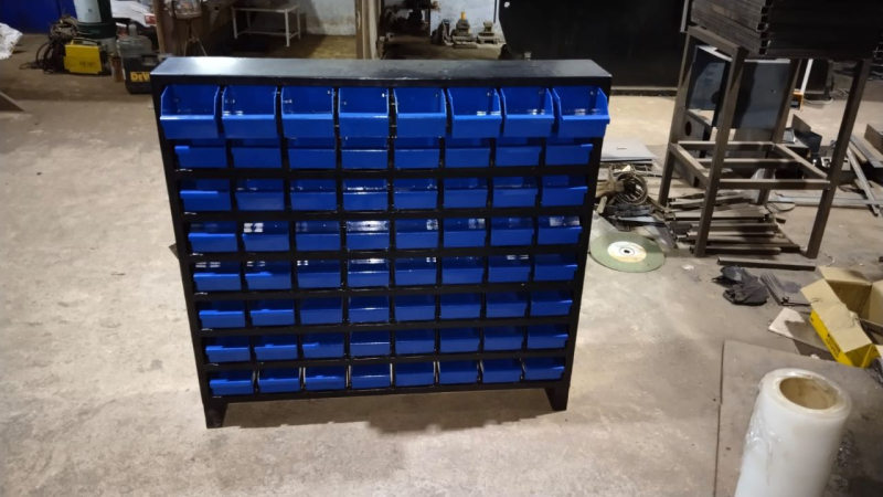 Storage Bin racks are used to store small component which can easily checked and identified.The frame in done using tube and the tray are done using sheet.