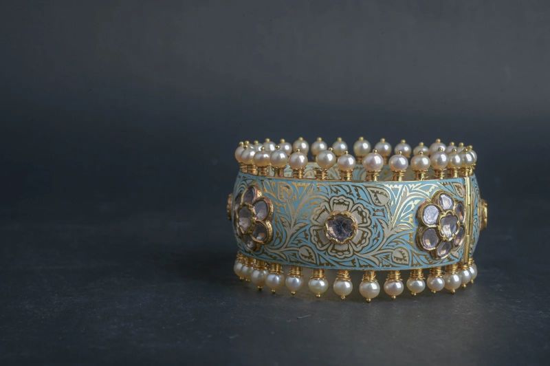 Not just an accessory, our exquisite polki bangles are a treasured piece waiting to be passed down through generations. Care : Gently wipe with a soft, dry cloth after each wear. Avoid harsh chemicals, perfumes, and lotions. Store in a cool, dry place, ideally in a fabric pouch. Have your jewellery professionally cleaned periodically. Treat it with care, as polki is delicate.