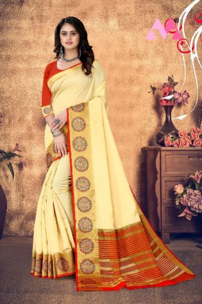 5/5 MTR Saree with 0.80 MTR Contrast Matching Blouse With Contrast Pallu