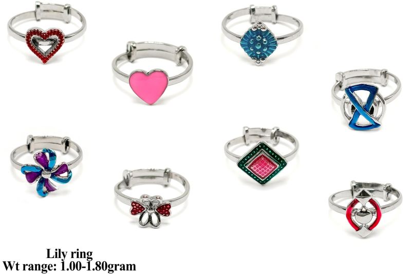 We offer a charming Red Heart Adjustable Lily Ring crafted from silver-toned alloy with enamel and bead accents, weighing between 1.00-1.80 grams. This kids' ring features a hollow heart design with a red enamel border and bead detailing, finished in polished silver with glossy red accents. Perfect for daily wear, it comes packaged in a card mount or velvet pouch. Originating from India, this exquisite piece is ideal for manufacturers and suppliers looking to add a touch of elegance to their collection.