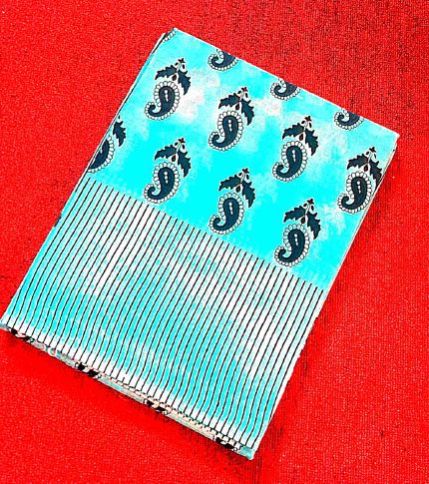 Cotton mulmul with hand block print, 6.5m including 1m blouse piece. Homewash preferable.