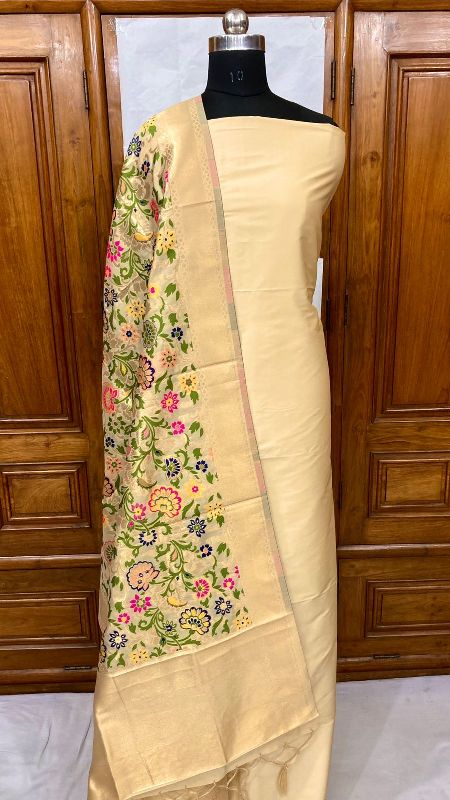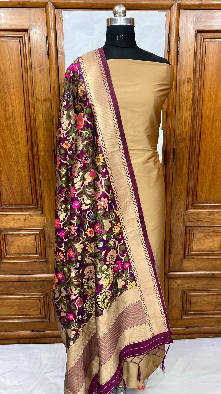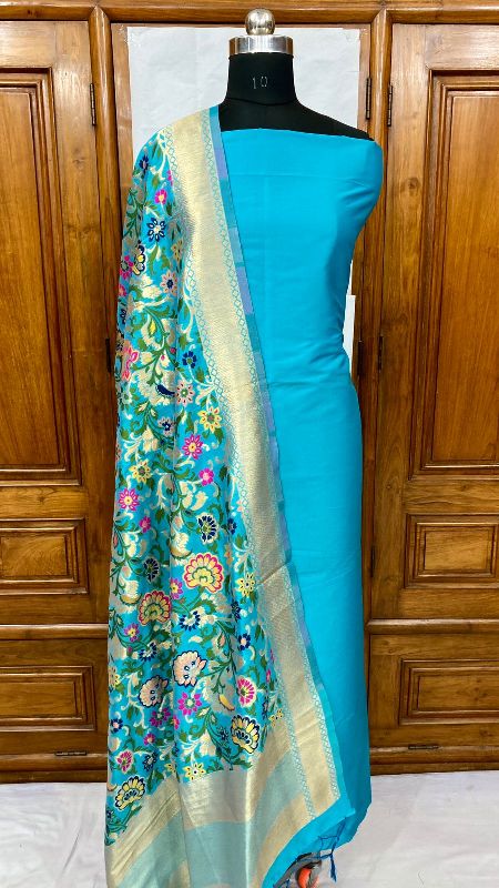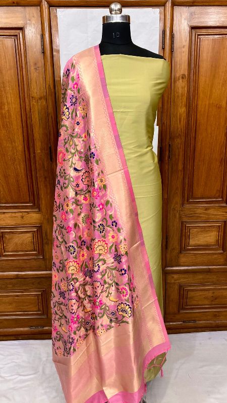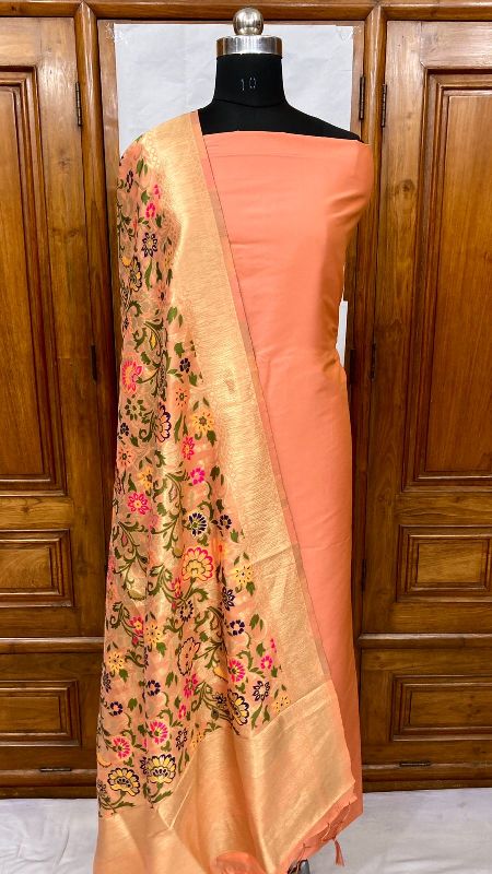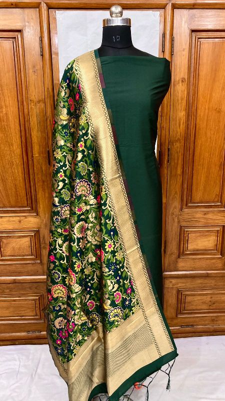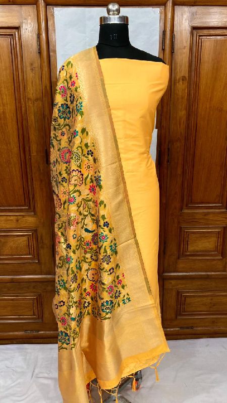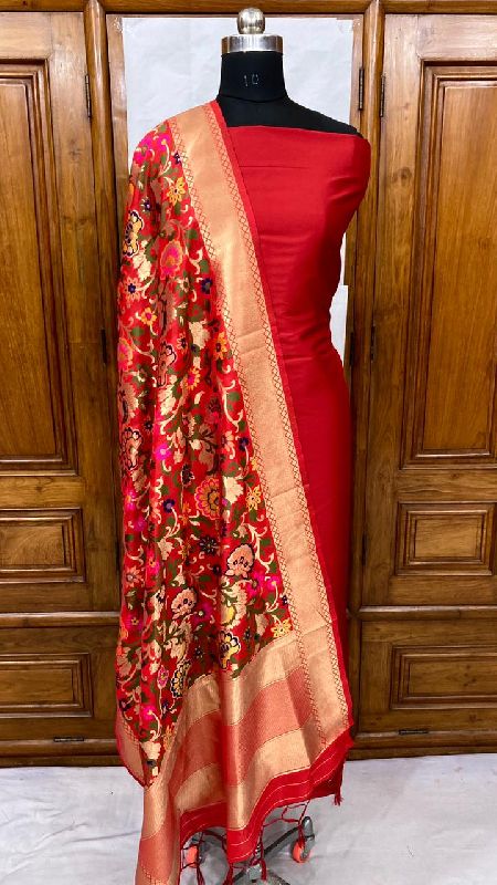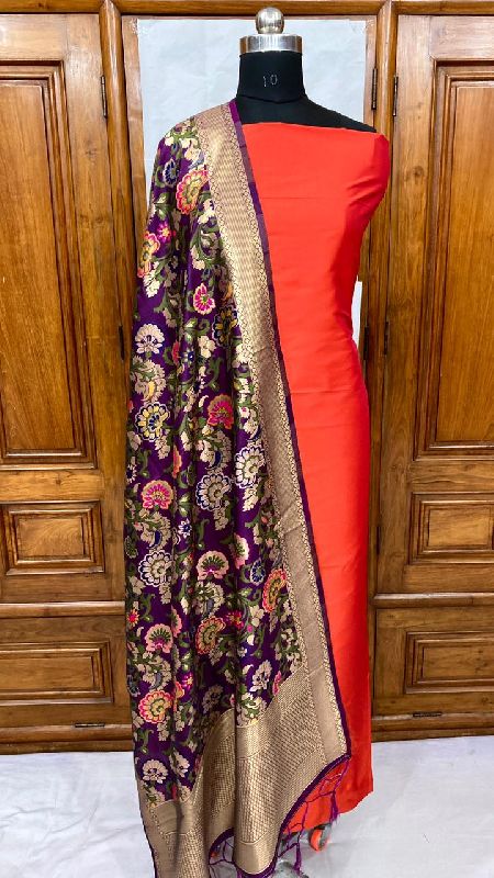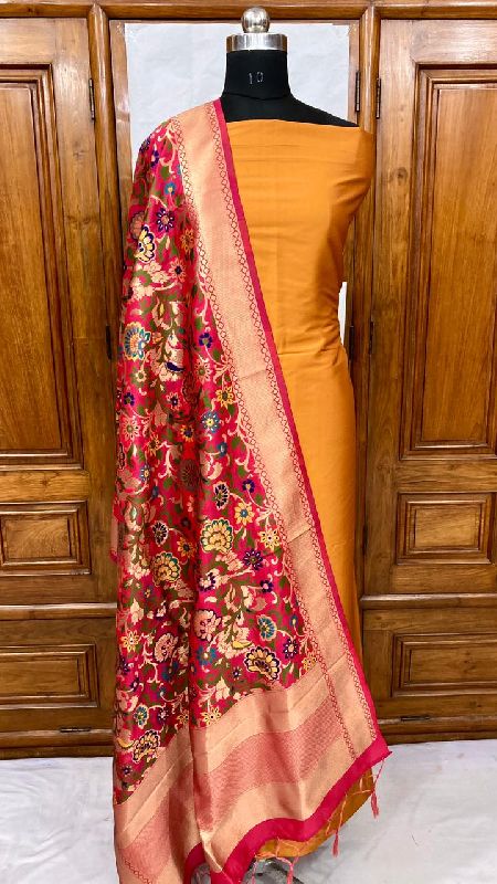 We offer a complete product range of Banarasi Handloom Khimkhabn Silk Dupatta with Plain Silk Kameez Unstistched Suit Set