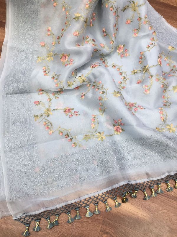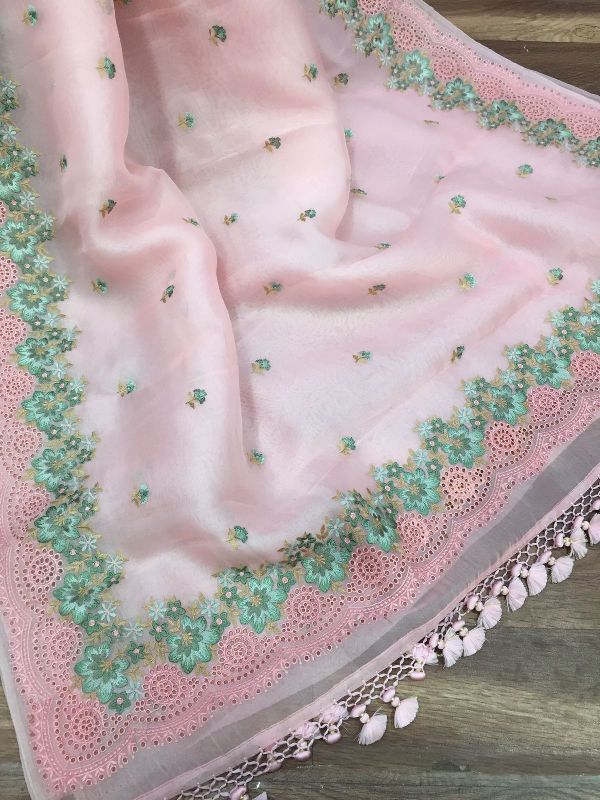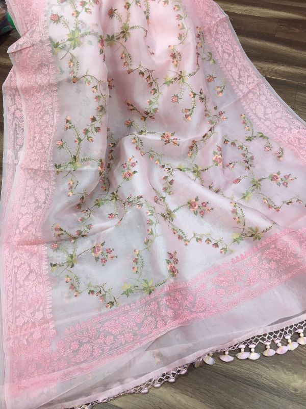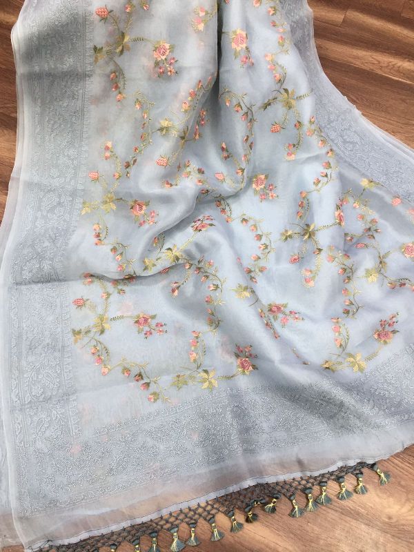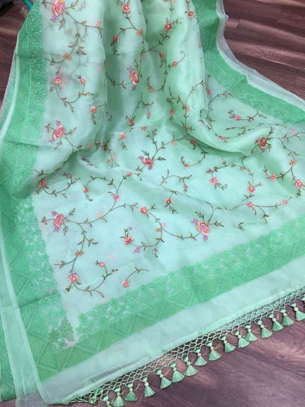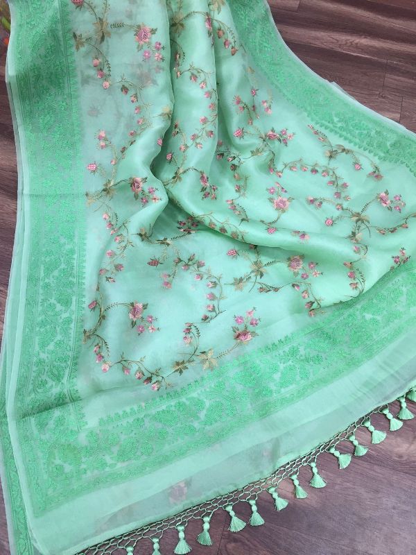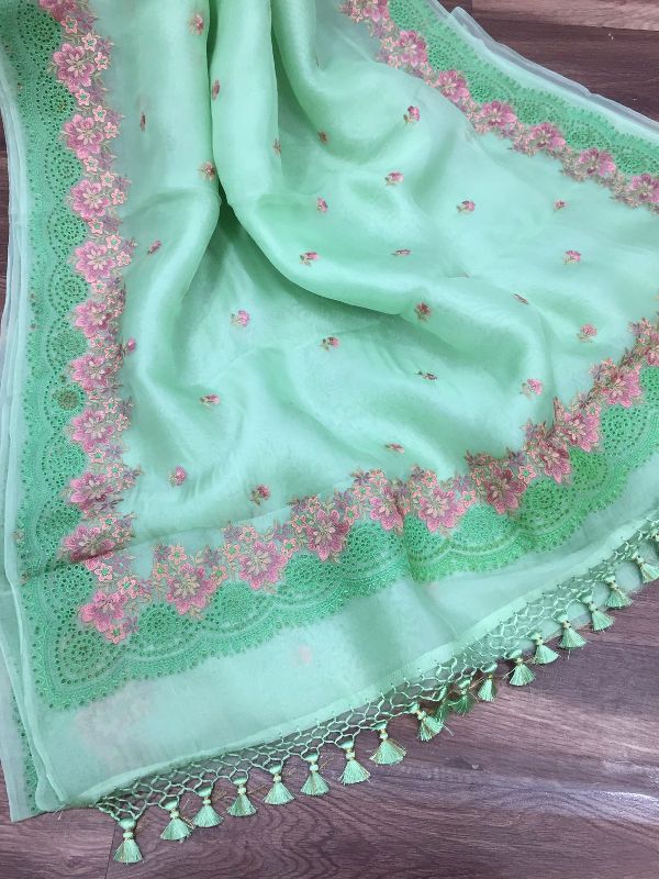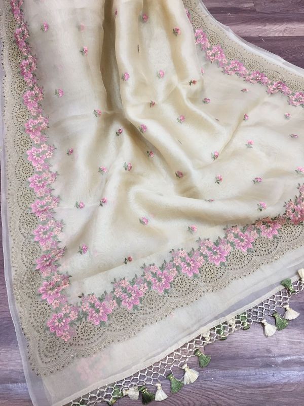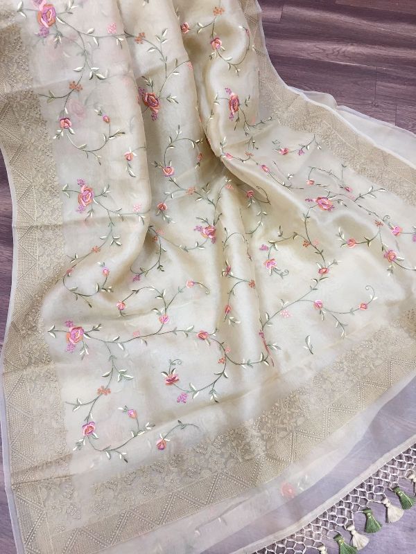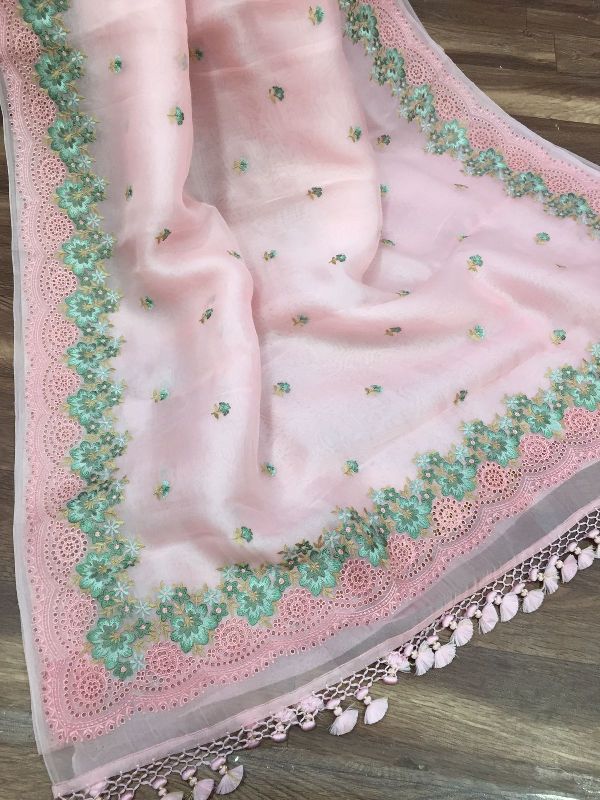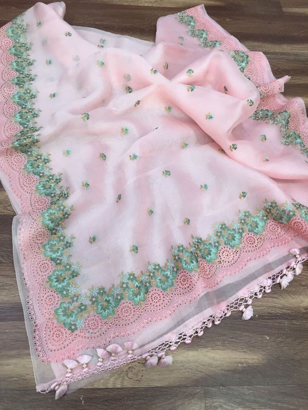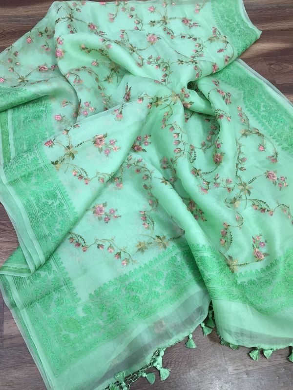 We are leaders in the market for providing best range of Pure Organza Silk with Alfi Resham Embroidery Meena Weaved Saree