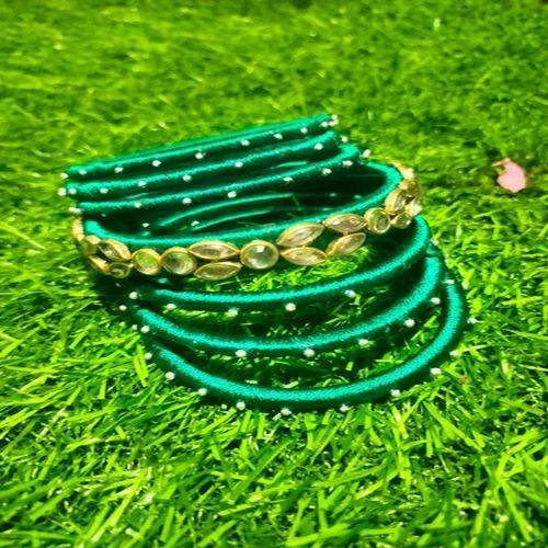 We offer a complete product range of Ladies Stone Work Silk Thread Bangles, Ladies Stone Work Pink Silk Thread Bangles, Ladies Stone Work Lavender Silk Thread Bangles and Ladies Green Silk Threaded Bangles