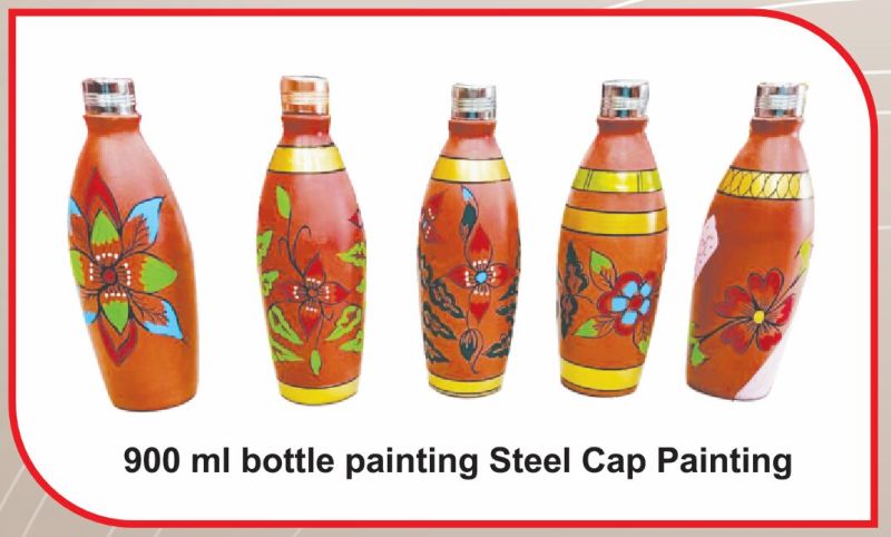 Leading Manufacturer, Supplier & Retailer of Clay Handicrafts, 5 Ltr Terracotta Mitti Handi Set and 900 Ml Terracotta Printed Bottle With Steel Cap.