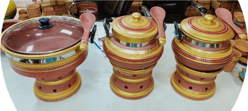 Handcrafted Organic Clay 5 Ltr Handi mitti catering set Painting for serving food