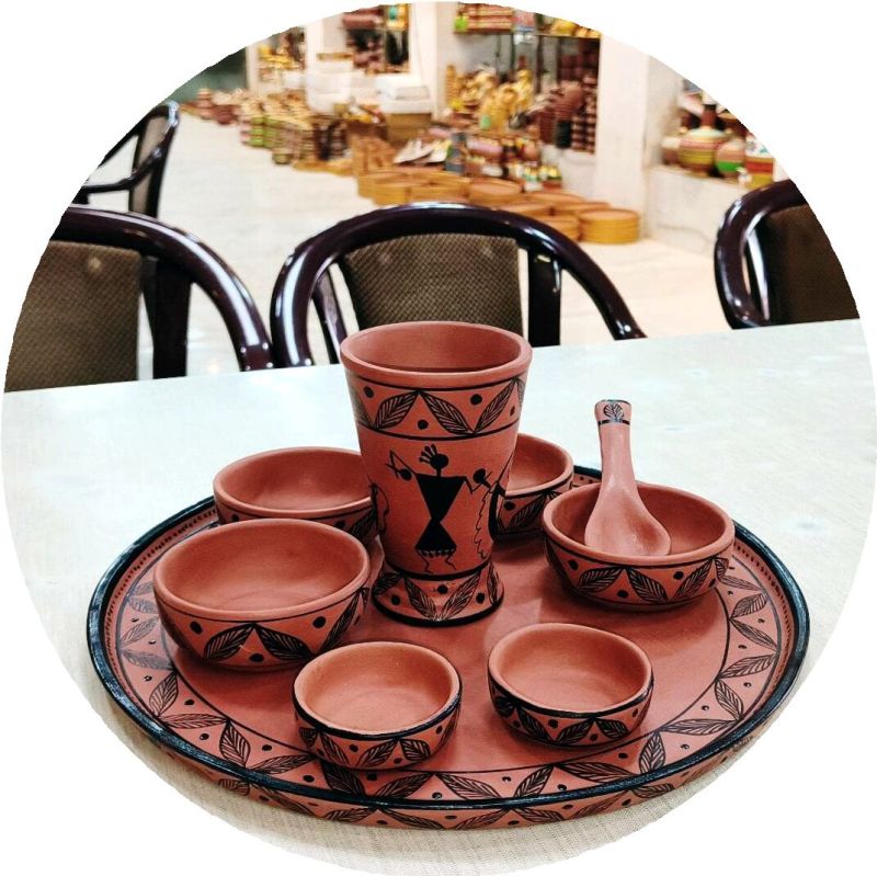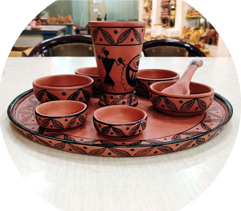 Handmade clay tawa, kitchenware, kulhad, glasses, bottles etc.