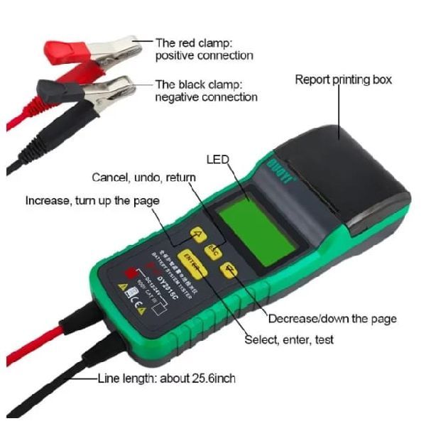 Storage battery tester fit for all kinds of lead-acid batteries that used in equipment system associated with lead-acid battery. It is available to vehicle of 12V storage battery. The working voltage of tester is DC 9V to 35V. Please do not check the series connection battery with the tester.PRODUCT DETAIL PRESENTATION