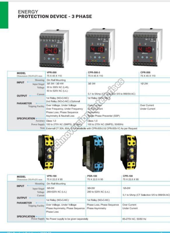 Tripping Faciities - (1) Over current, (2) Under Current, (3) Unblance, (4) Single phasing, (5) Short circuit