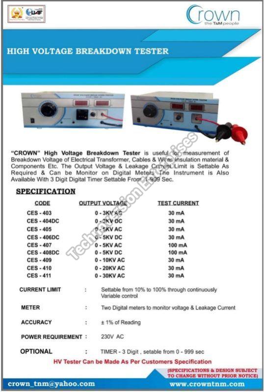 HIGH VOLTAGE BREAKDOWN TESTER -