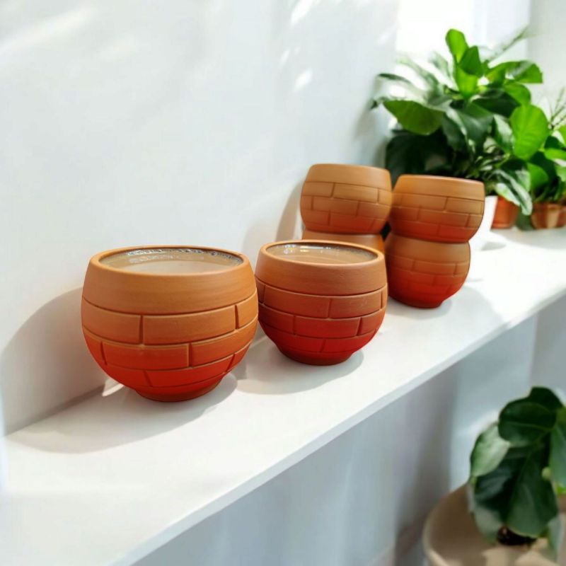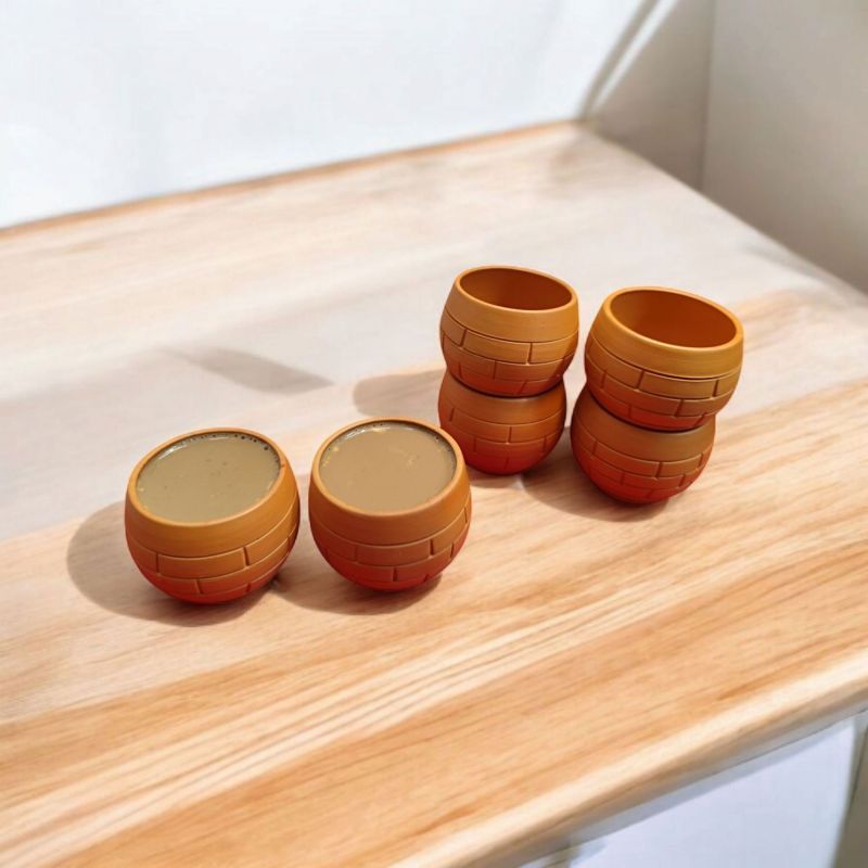 Buy Now: Krafft Reusable Terracotta MicrowaveSafe Dahi Storage Matka, Kulfi Matka, Thandai Glass, Coffee Cup, Tea Cup for Home Use, Cafeteria Use, Tabelware, Corporate Gifting 120ml (Set of 6)