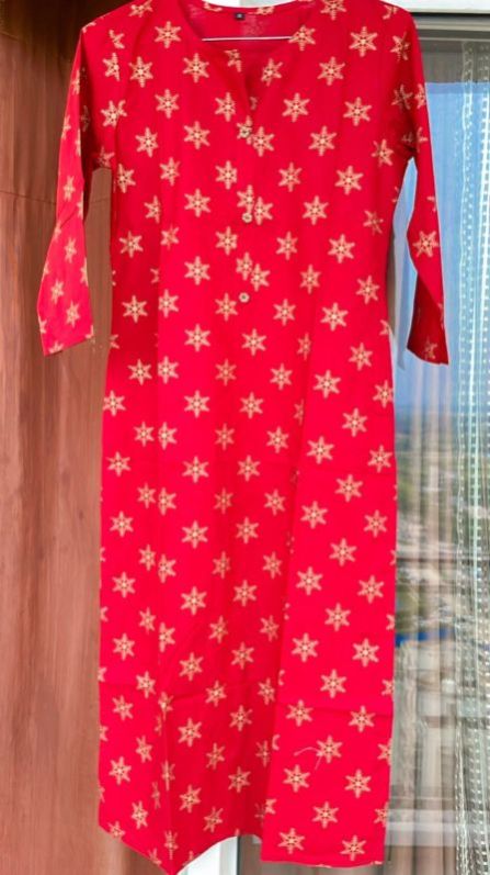 Red printed kurti Sleeves : three quarter Length: calf length All sizes