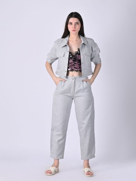 The definition of effortless outfitting, this wardrobe staple co-ord set in Linen features a wrap style crop top with placket opening at one side classic sleeve with cuff opening coordinating with pleated skirt opening at sides.