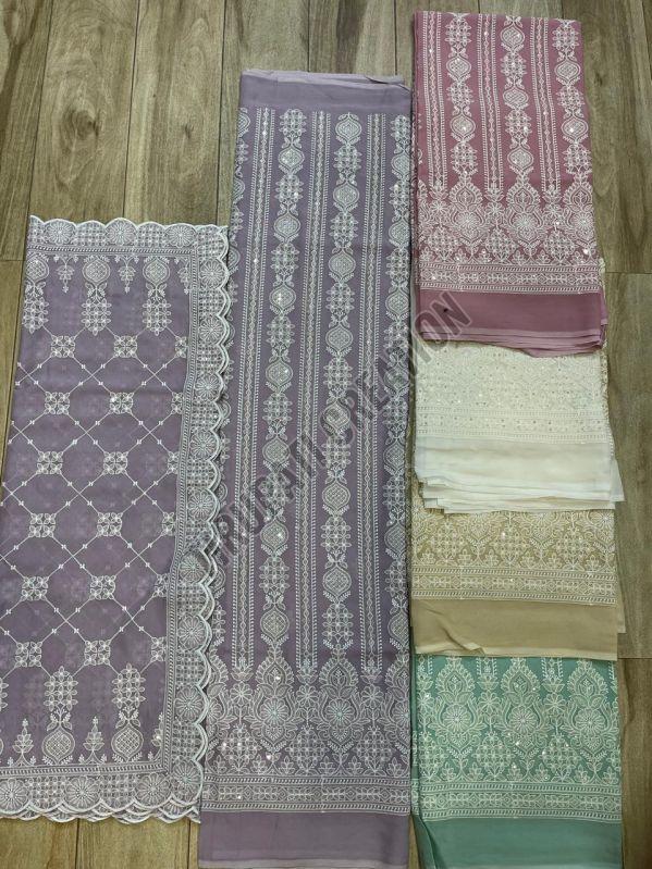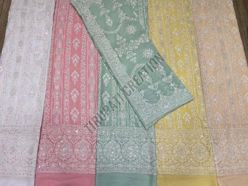Leading Manufacturers, Exporters and Wholesaler of 44inch Embroidery Work Viscos Georgette Fabric and Chikankari Embroidery Work Viscos Georgette Big Fabric from Surat.