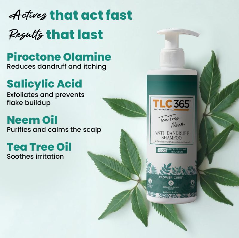 TLC365 Anti-Dandruff Shampoo provides advanced scalp care by targeting dandruff at the root and preventing flakes. Powered by Piroctone Olamine, a clinically proven anti-fungal agent, it helps eliminate dandruff-causing microbes for long-lasting relief. Infused with potent actives like Neem Oil and Tea Tree Oil, this deep-cleansing formula removes dirt and excess oil while soothing irritation. Ideal for regular use, it restores balance and supports overall hair health.