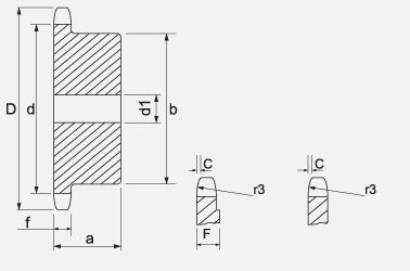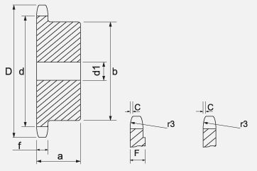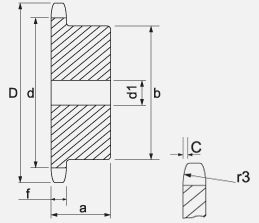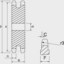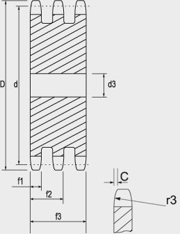 | Tooth radius r3 | 19 | Pitch | 19.05 |