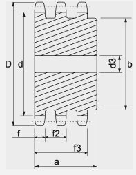 | Tooth width f | 2.3 | Roller | 3.2 |