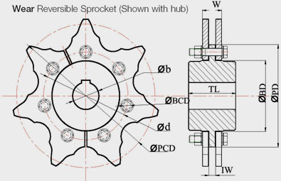 | Chain Ref | No of Teeth | Max. Shaft Dia. B(mm) | Pitch Circle Dia. PCD (mm) |