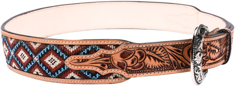 Complete Handtooled Belt made with VT grain Leather. 40 MM Width used glass beads on it for better quality