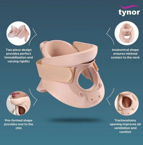 Tynor Cervical Collar Hard (Adjustable) used for supporting, immobilizing or adjusting the neck in the flexion, extension, or hyperextension position. Recommended where a rigid immobilization of the cervical region is required.