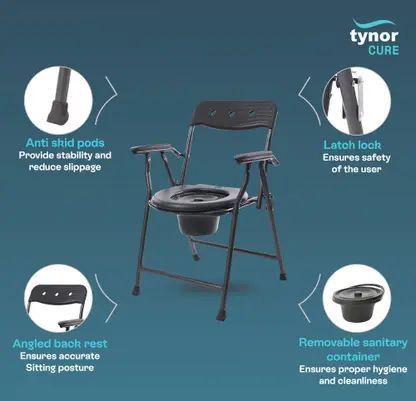 Tynor Commode Chair Ergo is a mobile toilet chair that can be placed anywhere for patients that are unable to cover the distance to the bathroom due to frailty, fracture, injury or surgery. This product helps to maintain a normal bowel routine. The removable sanitary container helps to maintain proper hygiene.