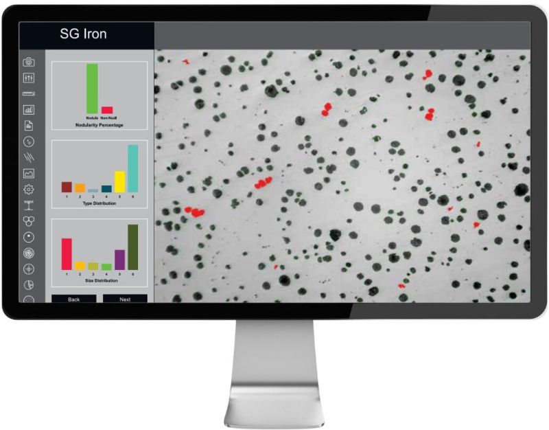 Smart Nodularity & Flake Analysis:Automatically separates nodules from non-nodules based on spheroidicity, size, and form. Reports graphite flake type, size, orientation, and distribution.