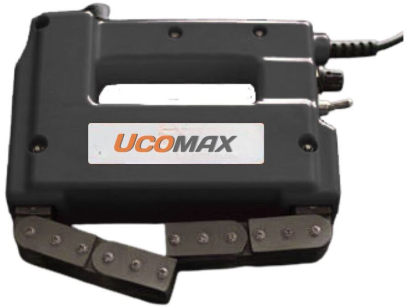 TheUCO Flexis a manual, one-axis encoded scanner designed for inspecting circumferential welds on pipes and flat surfaces. Its hinged, flexible frame adapts to pipe diameters starting from 114 mm (4.5 inches) and larger, providing stable and consistent probe contact for accurate ultrasonic testing. The adjustable frame grips the pipe securely, while spring-loaded probe arms maintain proper pressure to achieve clear, repeatable inspection results. Magnetic wheels help the scanner stay firmly attached to ferromagnetic surfaces, allowing smooth manual movement around the weld. The scanner can be configured with up to eight probes for phased array, pulse-echo, or TOFD inspections, making it suitable for various inspection needs in standard or tight spaces.