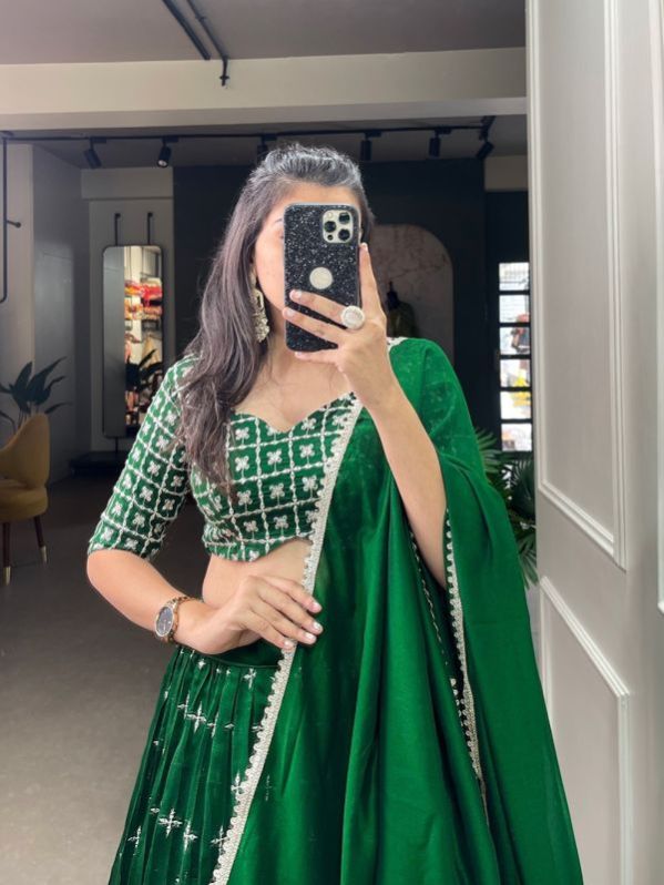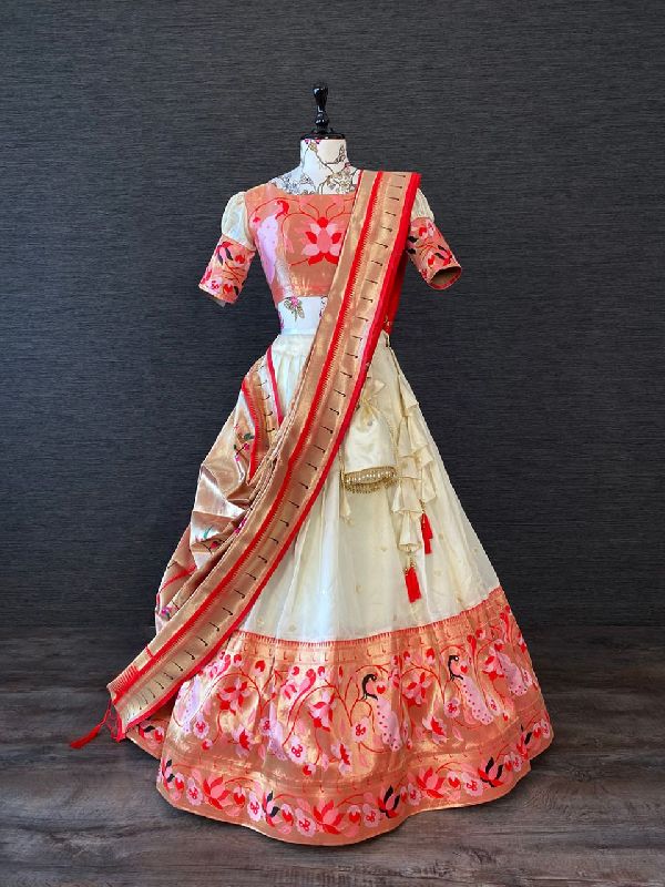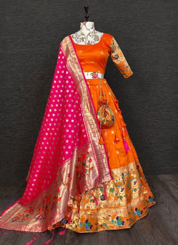 We offer the best product range of Sequins Embroidery Work Net Lehenga Choli, Jacquard Paithani Lehenga Choli, Weaving Zari Work Jacquard Paithani Lehenga Choli, Floral Printed Organza Silk Lehenga Choli and Jacquard Silk Paithani Lehenga Choli.