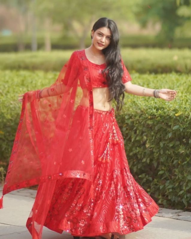 Flaunt your simple and pretty look with this Beautiful’s colored lehenga choli. This lehenga is Beautified With Amazing Hand Made Flower As Shown. Specially Designed To Wear In Weddings, Functions, Engagements, Ceremonies And Special Occasions.