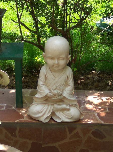 This beautiful Budha statue is part of our latest creation. It is comfortably sitting with hands folded and will bring calm and peace to your home, garden or balcony. Excellent for decor and perfect for gifting. It is made of tough poly resin, hand made and hand painted with special coating of paint to make it weather resistant and hence can be kept inside or outside your home.