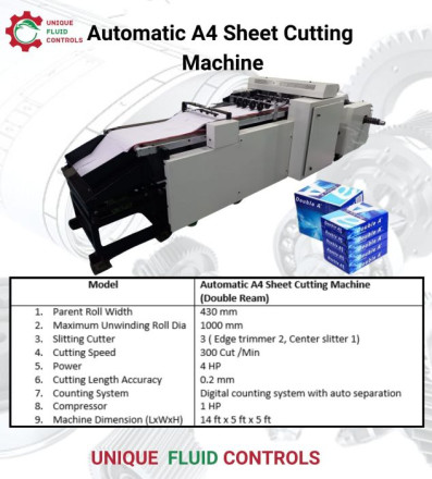 Unique fluid controls is manufacturing a A3 & A4 size sheet cutting machine in coimbatore. This machine is cutting both A3 & A4 size sheet not a same time.