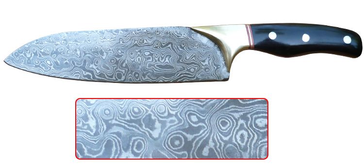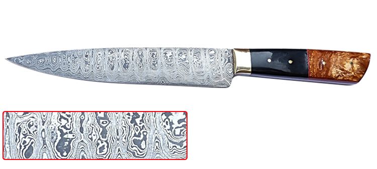 Carbon Steel 224 Layers Twisted and Fire Strom Pattern Damascus steel Forged Full Tang Blade, steel Bolster, black Paka Wood, Burl wood, Rasin Gem stone Handle