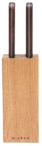SOLID WOOD KNIFE BLOCK WITH HANDWRITTEN WOOD BURNED LOGO AND OIL FINISH. HAND WASH ONLY, NEVER SOAK IN WATER. RE-OIL SURFACE AS NEEDED. APPROX. DIMENSIONS: 2-SLOT: 3" W x 7" H x 1.5" D 3-SLOT: 4.5" x 7" H x 1.5" D 4-SLOT: 6" W x 7" H x 1.5" D 5-SLOT: 7.5" x 7" H x 1.5" D 6-SLOT: 9" x 7" H x 1.5" D