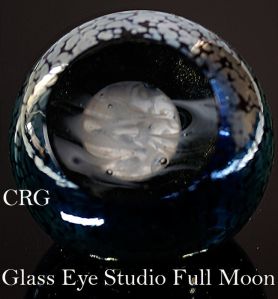 artists have captured a glowing full moon, peaking from behind wind swept clouds. 3" dia. Planet Weights *Presented in velvet box with story card, signed and dated. Handmade in the USA - 1st Quality Only. Glass Eye Studio products contains ash from...