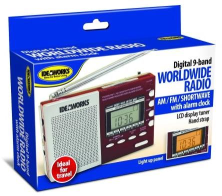 DIGITAL WORLDWIDE RADIOAMFM plus 7 shortwave bands. Light up digital LCD display tuner for precise channel selections. Clear reception built-in speaker. Bonus alarm clock feature. Includes hand strap - ideal for travel. Great for emergency kits. 2 AA Batteries (not inclu ID JB7360BRAND IDW-ETLCASE PACK 24CASE WEIGHT 8.6CASE LENGTH 10.6CASE WIDTH 7.2CONSUMER PACK COLOR BOXCONSUMER PACK DIMENSIONS 5.6 X 2.4 X 4.7UPC EAN NUMBER 017874015764