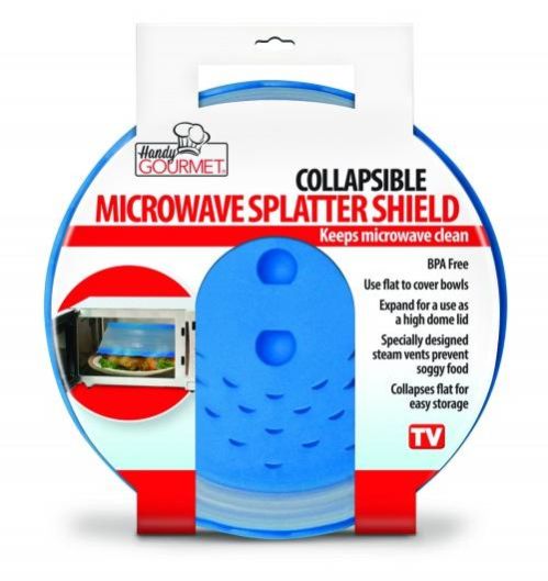 COLLAP. MICRO. SPLATTER SHIELDThis space saving cover has specially designed steam vents to prevent soggy food. No more messy clean ups. Use collapsed to cover bowls or expanded for use as a high dome lid. The space saving design folds flat to less than 1-inch thick. Microwave a ID JB5272BRAND HGMCASE PACK 24CASE WEIGHT 13.15CASE LENGTH 21.9CASE WIDTH 12CONSUMER PACK COLOR SLEEVECONSUMER PACK DIMENSIONS 10.75 X 10.75 X 1UPC EAN NUMBER 017874152728