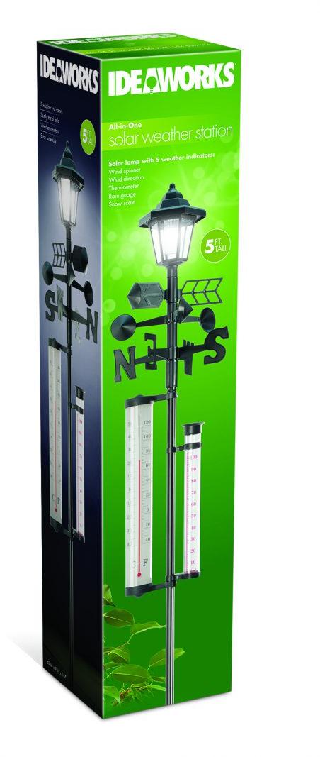 5 IN 1 WEATHER STATIONIncludes a wind direction arrow, anemometer that spins in the wind, a handy rain gauge and a thermometer that tells you the temperature in Fahrenheit or Celsius. Metal stake anchors easily anywhere in your yard. Made with durable iron and plastic. 5 tallID JB7967BRAND IDW-GNOCASE PACK 6CASE WEIGHT 15.85CASE LENGTH 16.00CASE WIDTH 10.90CONSUMER PACK COLOR BOXCONSUMER PACK DIMENSIONS 22.83" X 4.92" X 5.12"UPC EAN NUMBER 017874025763