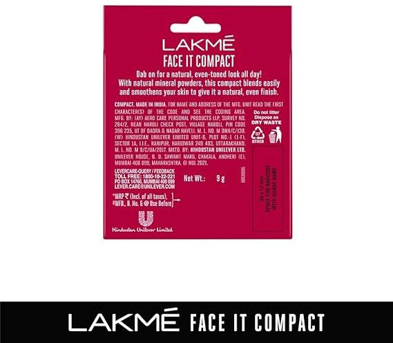 Lakmé compact powder is a lightweight makeup product that provides a smooth, matte finish and light coverage to even out skin tone and hide imperfections. It can be used to set foundation, absorb excess oil, and give a shine-free look. Some Lakmé compacts are enriched with skincare ingredients like Vitamin E, Vitamin B3, and Hyaluronic acid to nourish and moisturize the skin, while others offer sun protection. Lakmé compacts offer a light to medium coverage that can be built up for a more flawless finish.