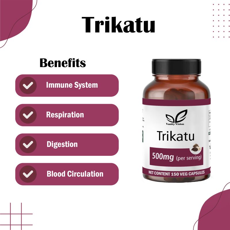 Trikatu herbal capsules are a natural way to boost digestion, immunity, and metabolism. They are made from a blend of three Ayurvedic herbs: ginger, black pepper, and long pepper.