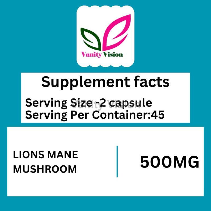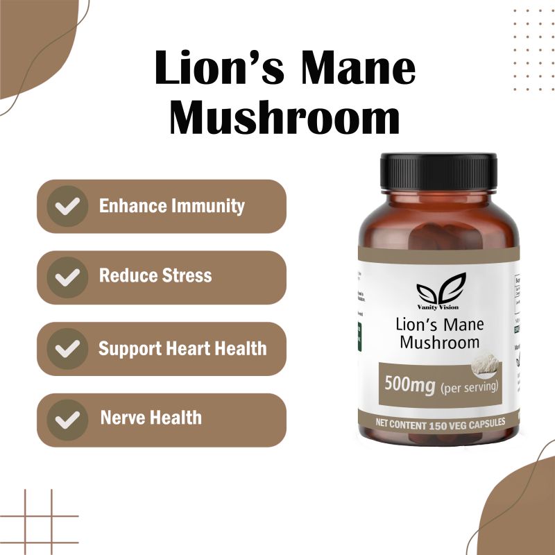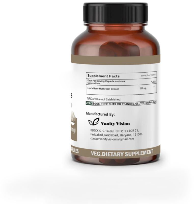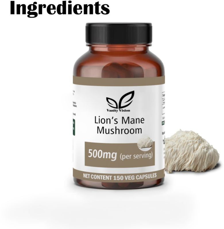 Vanity Vision Lion's Mane Mushroom 500mg is a high-quality herbal supplement designed to support brain health, mental clarity, and cognitive function. Sourced from the revered Hericium erinaceus mushroom, known as Lion's Mane, this powerful nootropic has been used for centuries in traditional medicine for its remarkable ability to enhance focus, memory, and neuroplasticity. Each capsule provides a potent 500mg dose of Lion's Mane extract, delivering a natural boost to cognitive performance, mental sharpness, and overall brain vitality.