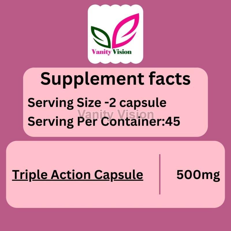 Triple Action Herbal Capsules are a natural dietary supplement that combines the power of three traditionally used herbs to promote digestive health and overall well-being. These capsules contain Isabgol, Swarnapatri, and Triphala, each with its unique set of benefits:
