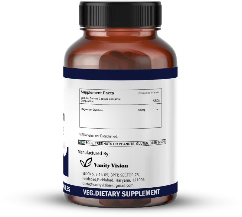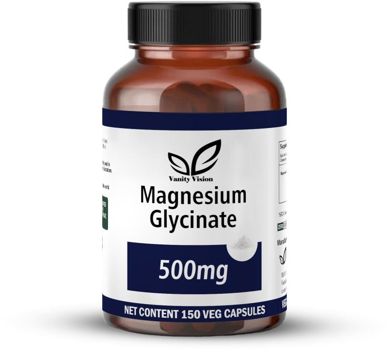 Boost your overall health with Vanity Vision Magnesium Glycinate 500mg Capsules, a highly absorbable and gentle form of magnesium. Known for its superior bioavailability, these capsules help support muscle function, nerve health, and strong bones. Magnesium plays a crucial role in energy production, reducing muscle cramps, promoting relaxation, and maintaining healthy cardiovascular function. Ideal for those looking to improve their sleep quality, manage stress, or enhance athletic performance. Experience the benefits of this essential mineral with our easy-to-swallow capsules for optimal absorption and wellness support.