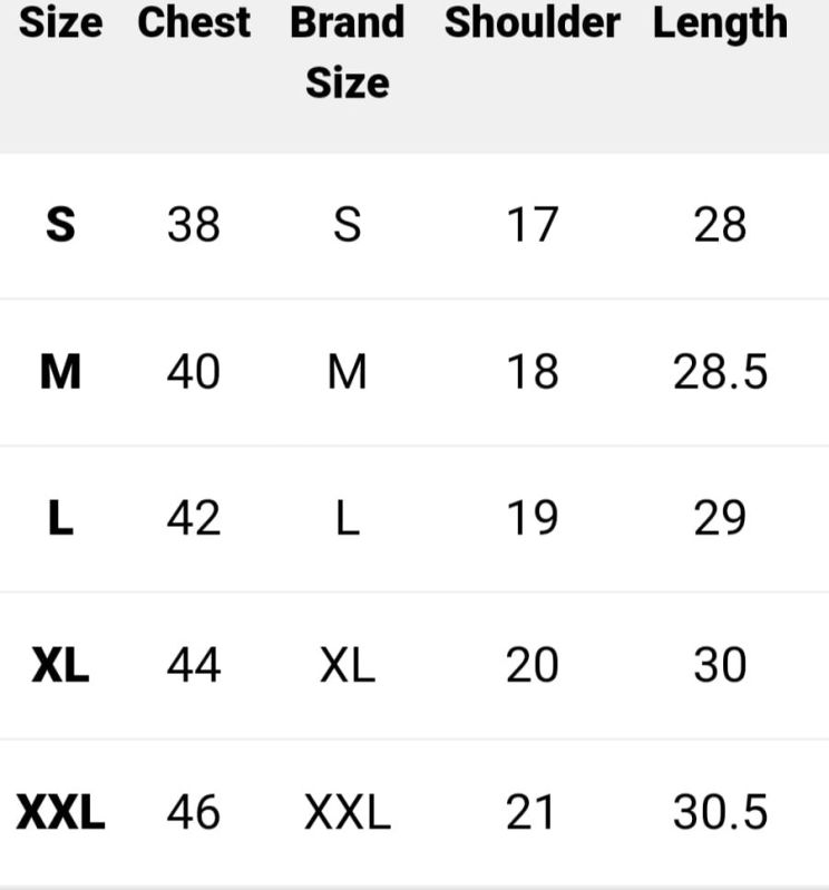 Size S, M, L, XL, XXL