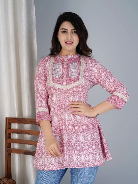 Fabric: -Cotton Sales Package: – 1 KURTA Secondary color: – White Top type: – Kurta Pattern: – Printed Color: – Pink Occasion: – Festive & Party