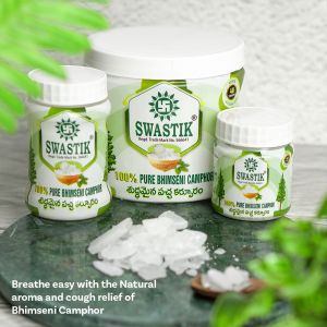 Swastik Camphor is a well-known brand in India, primarily recognized for producing camphor tablets and other related products. Camphor is traditionally used in religious ceremonies, particularly in Hindu rituals, where it is burned as an offering to deities. Its flame is considered pure, and the smoke is believed to purify the surroundings.